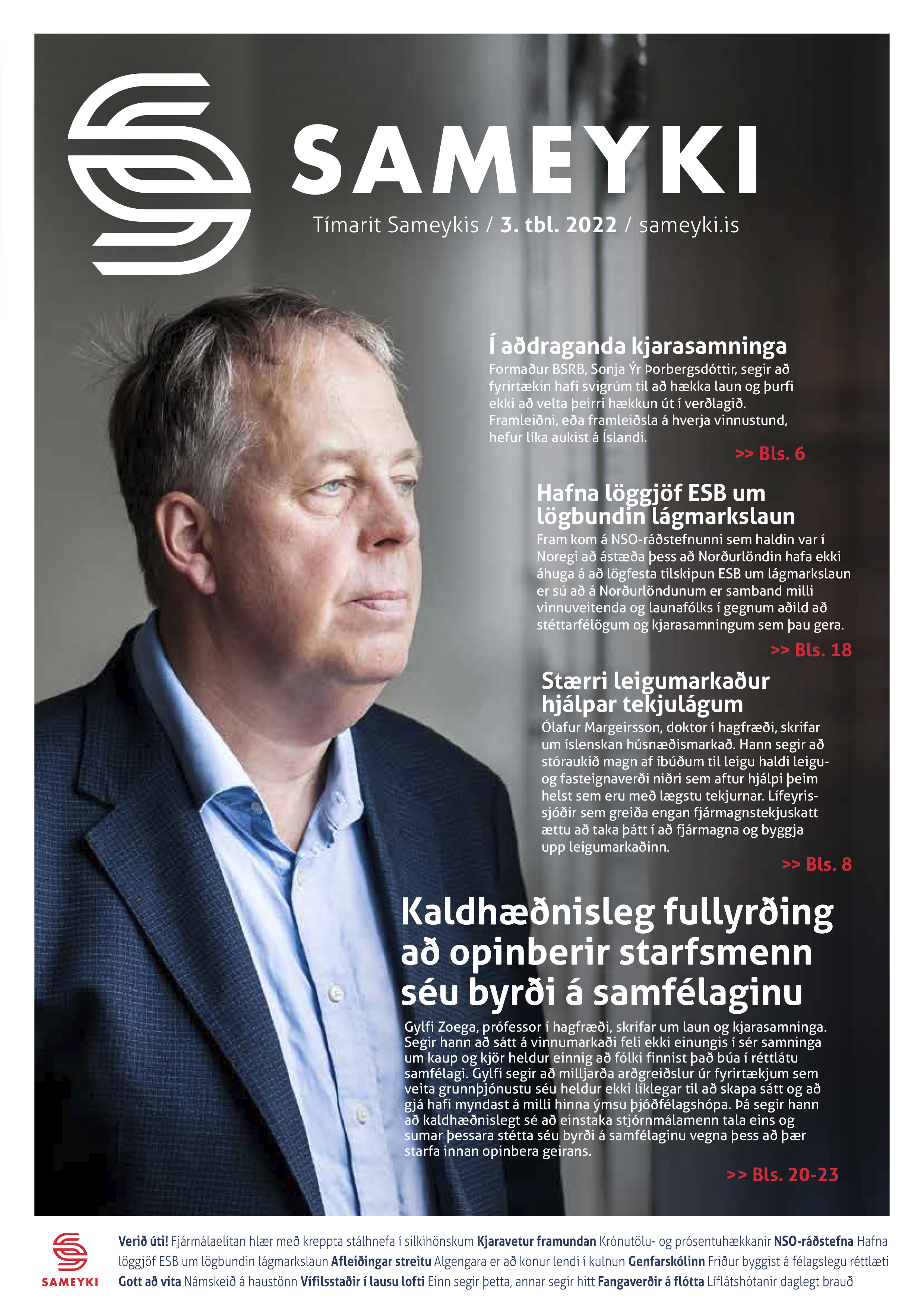 Tímarit Sameykis er nú leið úr prentsmiðjunni og er væntanlegt í pósti til félagsfólks í lok vikunnar. Þórarinn Eyfjörð, formaður Sameykis, segir m.a. í leiðaragrein að í komandi kjarasamningum þurfi að vanda vel til verka. Það þurfi að lyfta hinum tekjulægri verulega og það verði að tryggja eðlilegar, sanngjarnar og nauðsynlegar launahækkanir til millitekjuhópanna.