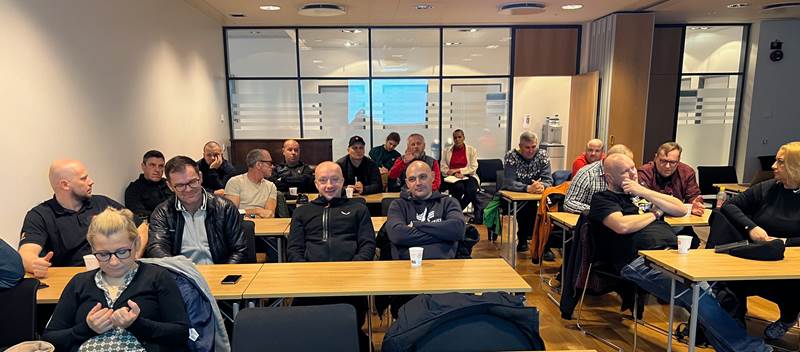 Pétur Karlsson, trúnaðarmaður Sameykis og formaður Félags atvinnubílstjóra hjá Strætó bs., og Ágústa Sigurðardóttir, vagnstjóri og trúnaðarmaður Sameykis í fagdeild Strætó bs., funduðu í morgun með pólskumælandi vagnstjórum Strætó bs.
