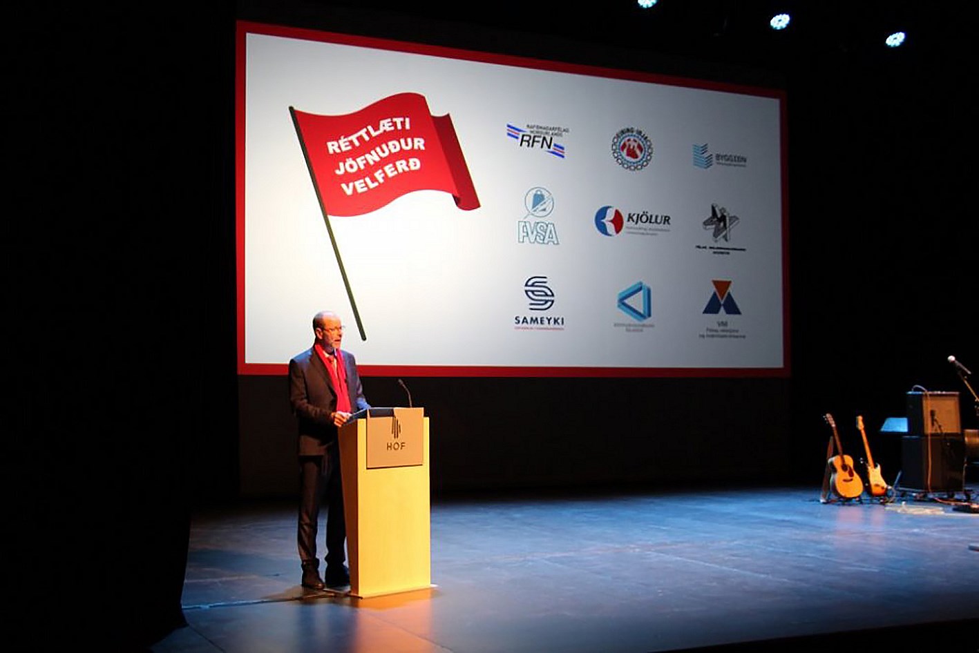 Sagði Þórarinn að saga stéttabaráttu og saga verkalýðshreyfingarinnar hafi kennt okkur að afl launafólks fyrr og nú hefur verið kveikjan og orkan sem knúið hefur fram breytingar á þjóðskipulaginu, öllum almenningi til heilla. Þá sagði hann að grundvöllur velferðarríkis náist með því að tryggja efnahagslegt réttlæti fyrir alla.