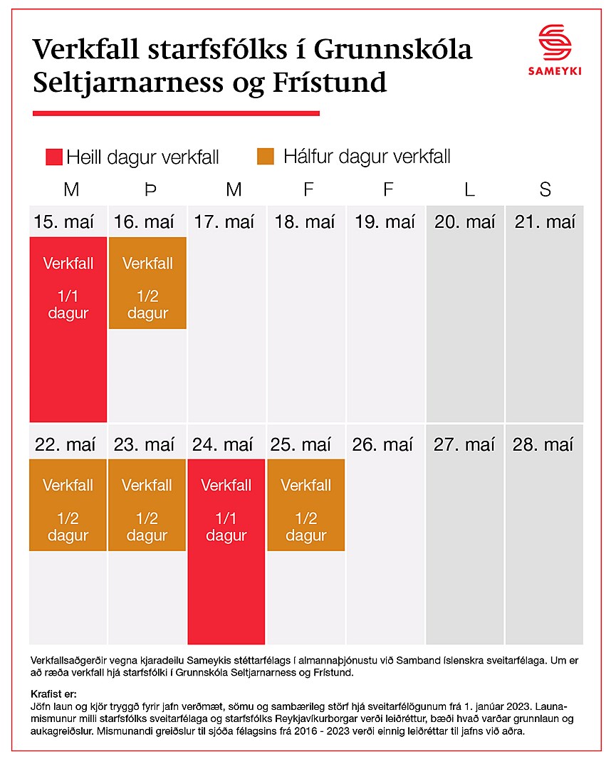Starfsfólk Kópavogs, Mosfellsbæjar, Garðabæjar og Seltjarnarness mun hefja verkfallsaðgerðir 15. og 16. maí.