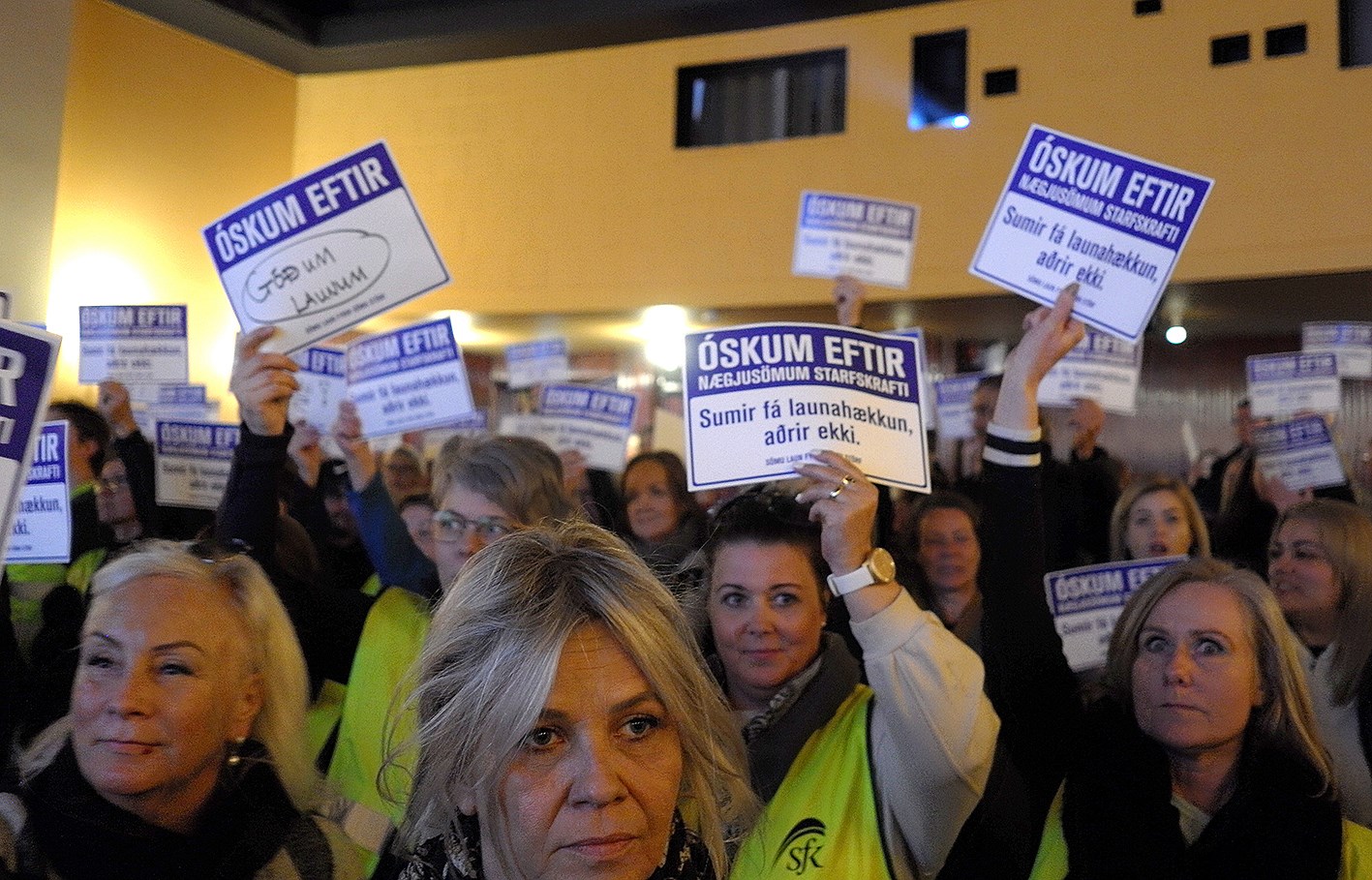 „Ég legg það nú upp í vana minn að vera bjartsýn en eftir þennan fund er ég orðin ansi svartsýn,“ svarar Emilía Ásrún Gunnsteinsdóttir, trúnaðarmaður á leikskóla Seltjarnarness, spurð um hvort hún haldi að verkfallið verði langt. Hún er ein af níu hundruð leikskólastarfsmönnum sem eru nú í verkföllum í ellefu sveitarfélögum.