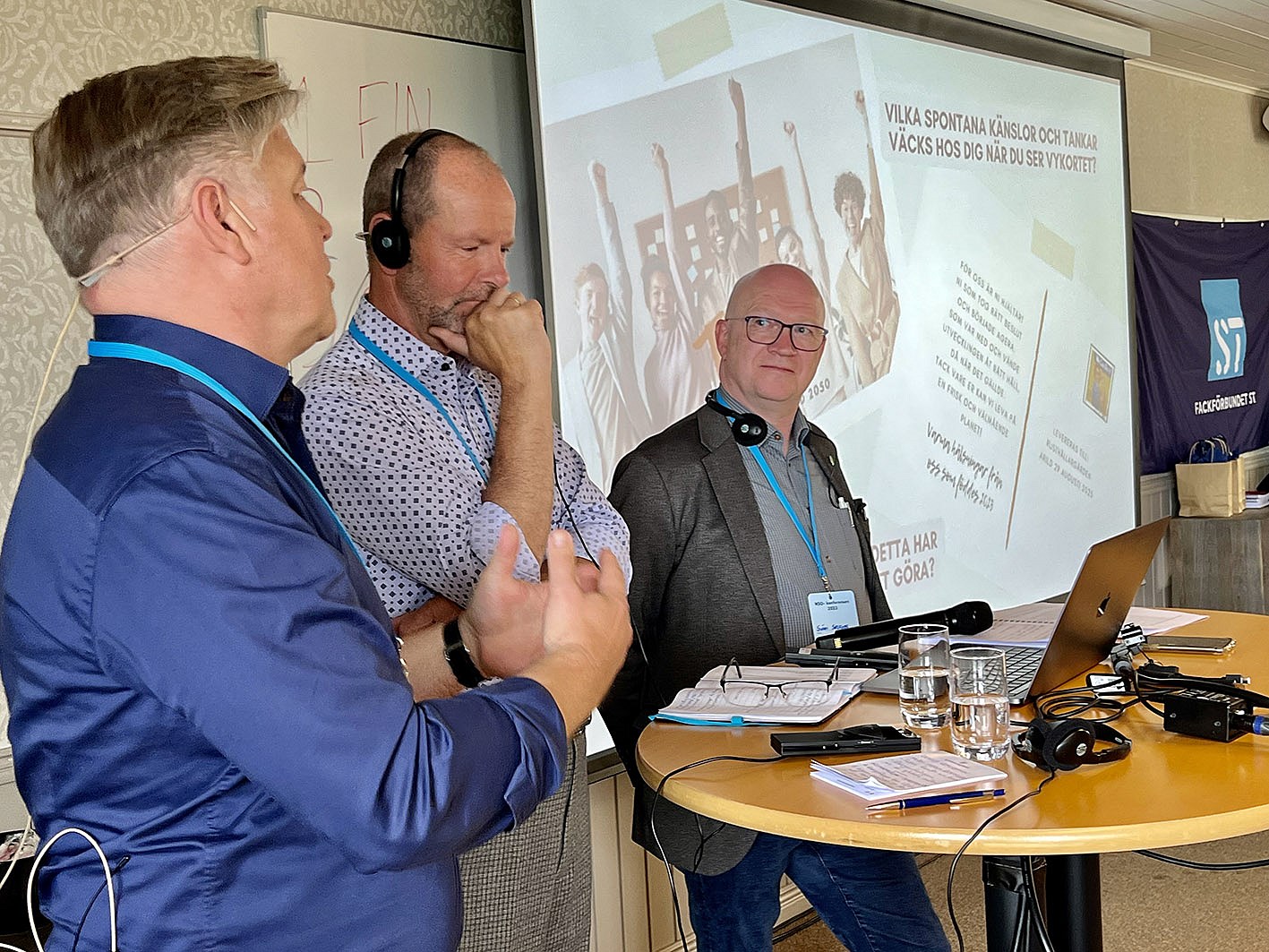 Þátttakendur í pallborðsumræðum um umhverfismál og loftslagsbreytingar sem tóku til máls voru Þórarinn Eyfjörð, formaður Sameykis, Tomas Oskarsson, ritari ST stéttarfélags í Svíþjóð, og Súni Falkvard Selfoss formaður Starvsfélagsins í Færeyjum.