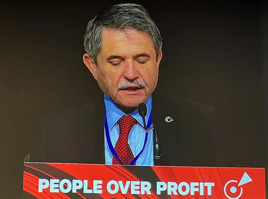 Huseyn Tanriverdi frá Tyrklandi ávarpaði þingið og sagði að stöðva verði þjóðarmorð Ísraela í Palestínu.