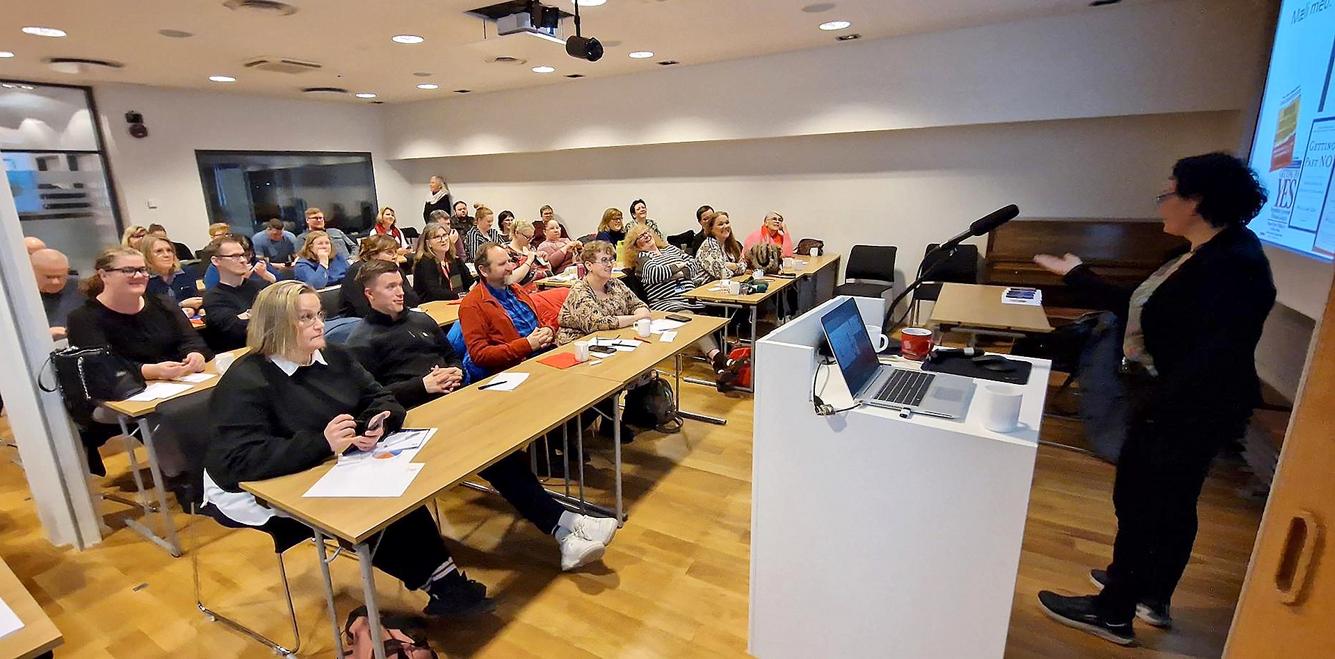 Samninganefndir Sameykis sóttu námskeið í samningatækni í gær sem þótti áhugavert fyrir komandi kjarasamningaviðræður. Námskeiðið var vel sótt og setið var í hverju sæti. Dr. Aldís G. Sigurðardóttir, lektor við viðskiptadeild Háskólans í Reykjavík, sá um að fræða samninganefndirnar í félagamiðstöðinni í BSRB-húsinu. Dr. Aldís er sérfræðingur í samningatækni og starfaði áður við Háskólann í Twente í Hollandi þar sem hún rannsakaði hegðun samningamanna og kenndi þau fræði sem og önnur viðskiptatengd fög. Í Twente þróaði hún námslínu á meistarastigi í samningatækni og stýrði því námi við háskólann.