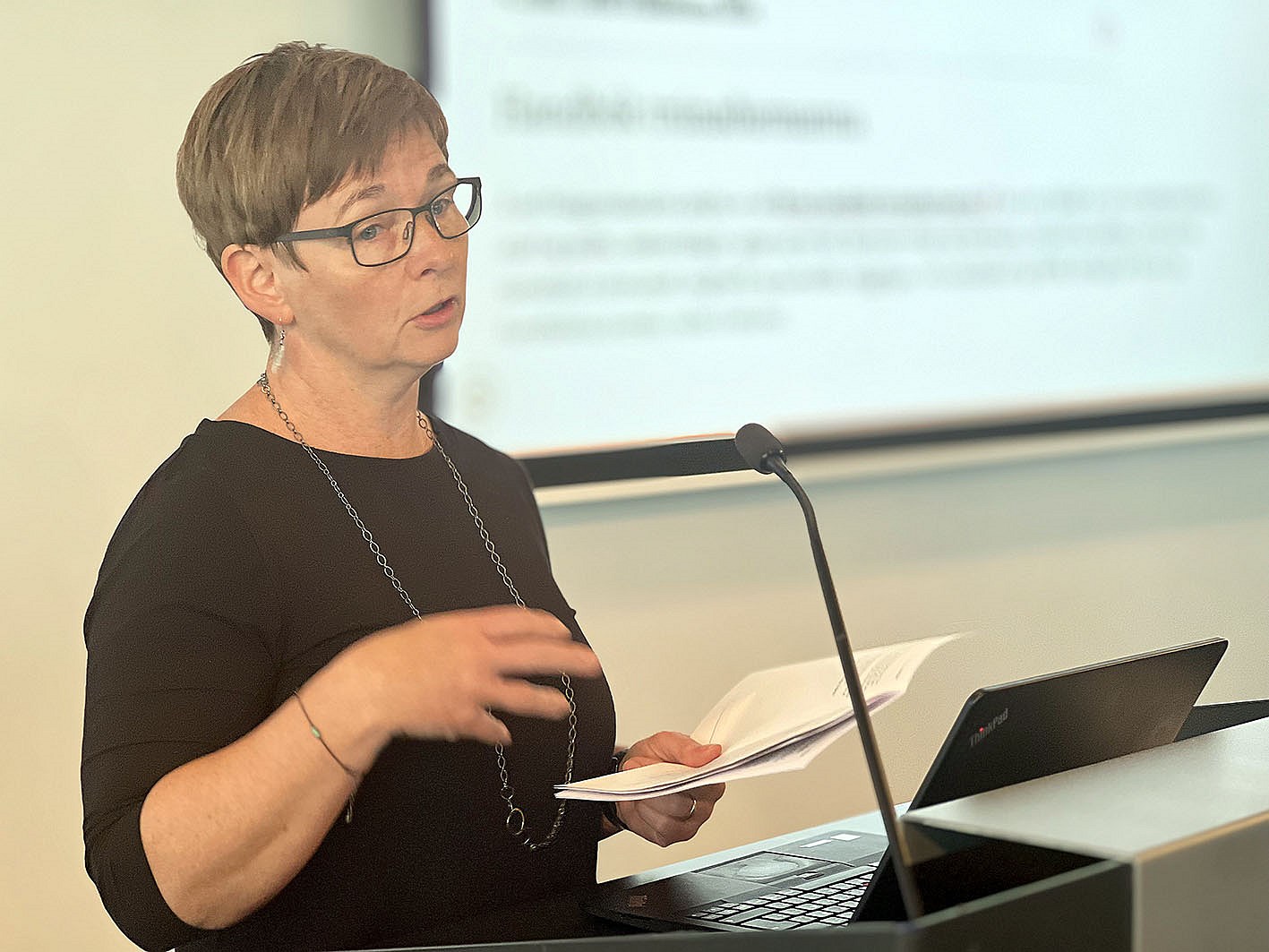 Jóhanna Þórdórsdóttir, fræðslustjóri hjá Sameyki, fræddi trúnaðarmenn um fjölbreytt námskeið og fræðslu sem þeim er boðið upp á hjá Sameyki og hvatti þá til að taka frá tíma á haustönn til að sinna fræðlu sér og öðrum til heilla.