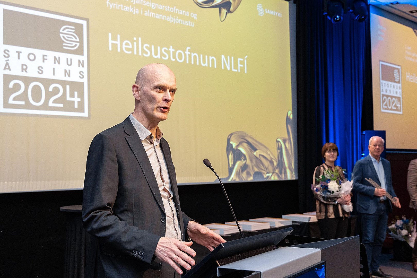 Þórir Haraldsson forstjóri NLFÍ, tók á móti viðurkenningu Stofnun ársins 2024 í flokknum Sjálfseignastofnanir og fyrirtæki í almannaþjónustu.