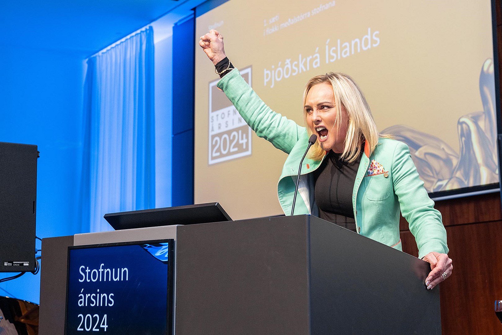 Júlía Þorvaldsdóttir, framkvæmdastjóri hjá Þjóðskrá, tók á móti viðurkenningunni Stofnun ársins 2024 og var hörku ánægð með árangurinn.