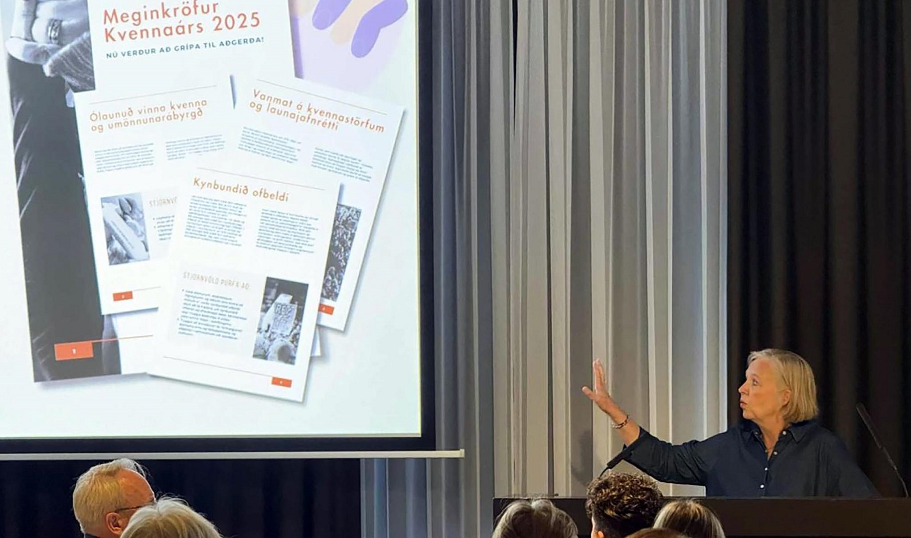 Sigríður Ingibjörg Ingadóttir, hagfræðingur hjá BSRB, flutti erindi á málþinginu út frá kröfum Kvennaárs 2025. Ljósmynd/BSRB