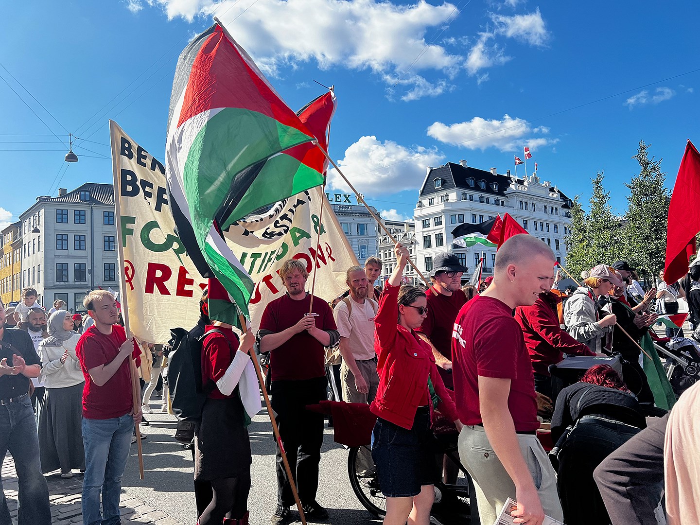Mótmæli af sama toga fóru fram í miðborg Kaupmannahafnar 24. ágúst sl. Yfirskrift þeirra var „Mótmælum úti á strætunum fyrir frjálsri Palestínu!“ Ljósmynd/Axel Jón